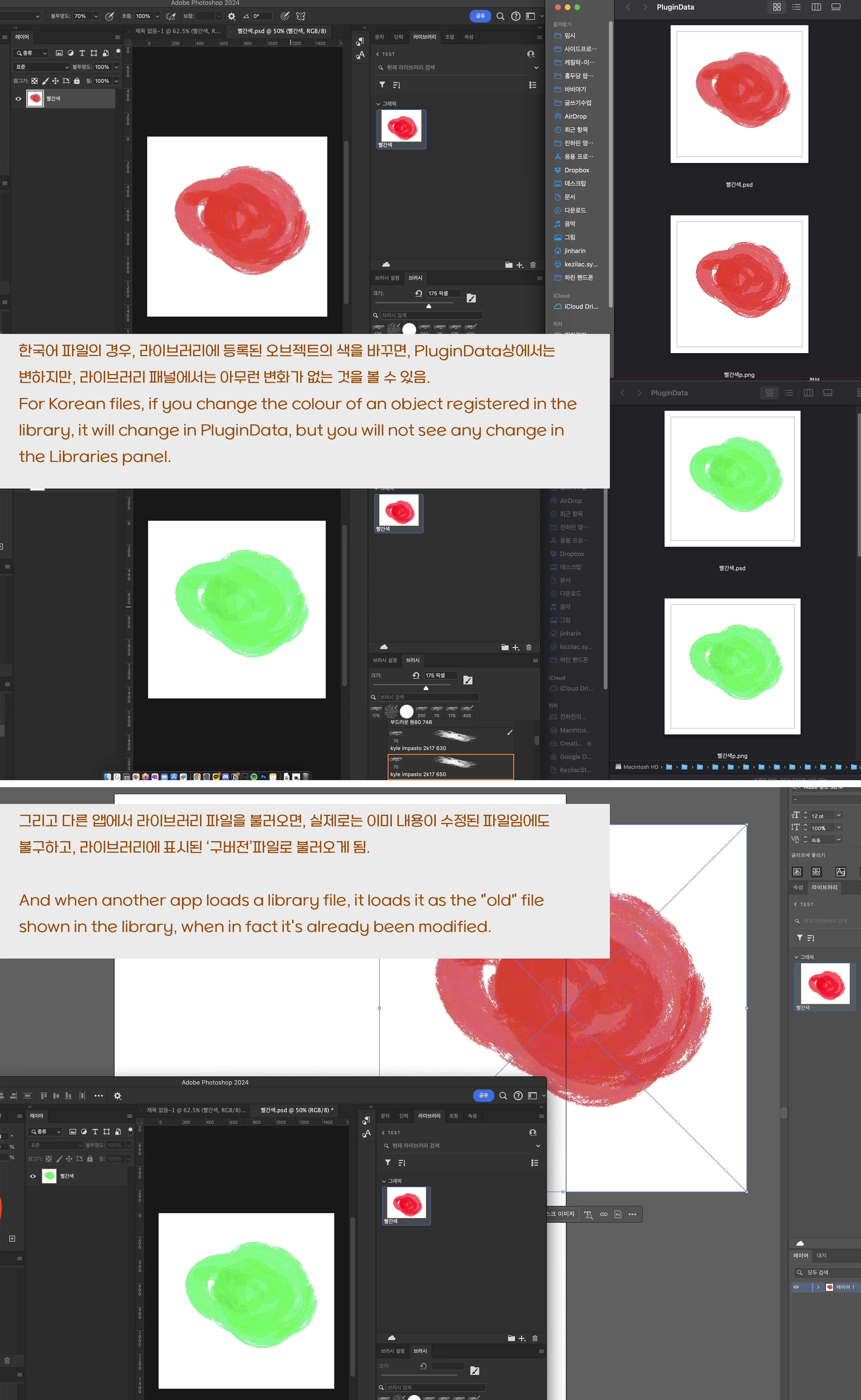 3. 해당 라이브러리 파일명이 영어일 경우에는 바로 수정사항이 업데이트 되지만, 한글일 경우에는 업데이트가 되지 않음(If the library filename is in English, the changes are updated immediately, but not if it is in Korean.)