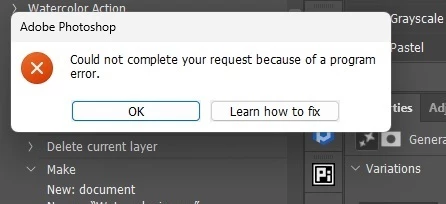 Nano Banana Pro in Photoshop: "Could not complete your request because of a program error" – Works intermittently, very slow/fails most times