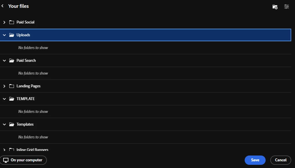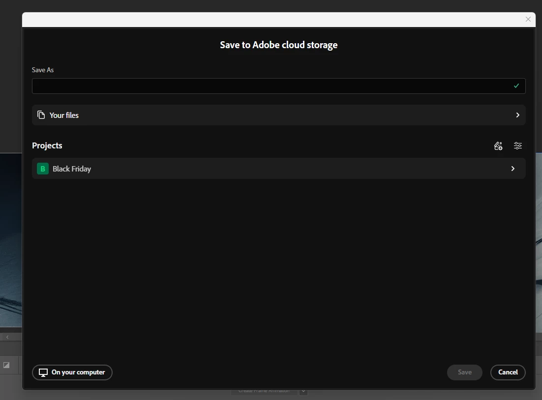 Hey, since the last update I can't see my saved files in the Save to Adobe Cloud Storage panel.