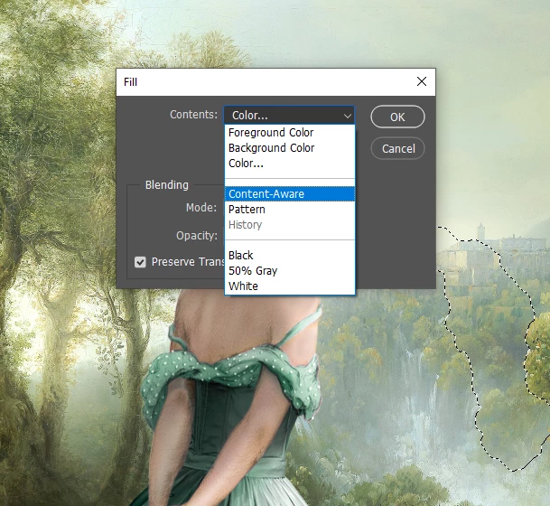 My screen shots for both options showing Delete and Fill Selection missing.
