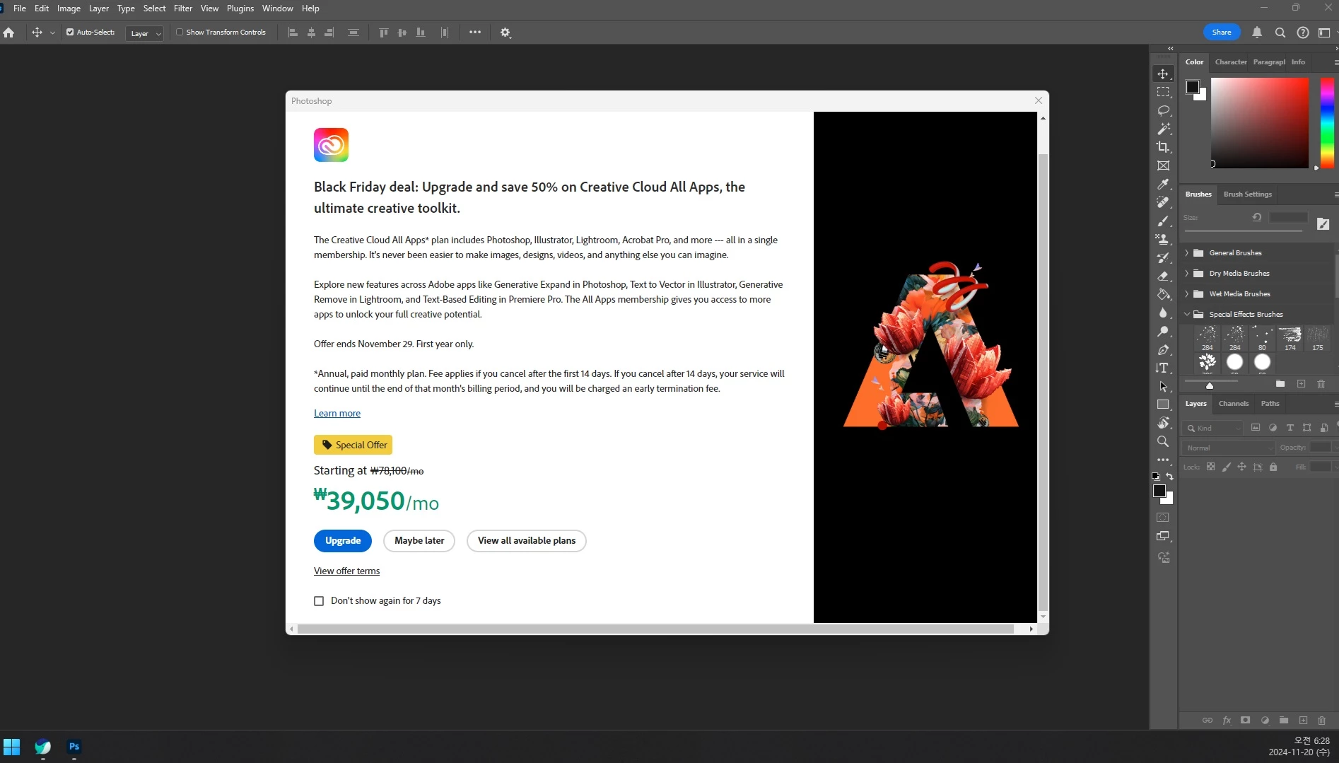 For the last week or two Adobe has been popping up ads to "upgrade my plan" in Photoshop. (Seriously guys? I already pay for this software, there are cheaper and/or free alternatives coming out every day, and you're spamming us to suck more money? You think this is a good idea?) There is a "stop for seven days" check box (hidden, that you have to scroll down to see), but no option for "[removed by moderator]" How do I stop these? Or, rather, I should say, is there a way to stop these other than dumping my Adobe subscription altogether, which is what it seems Adobe is trying to get me to do?