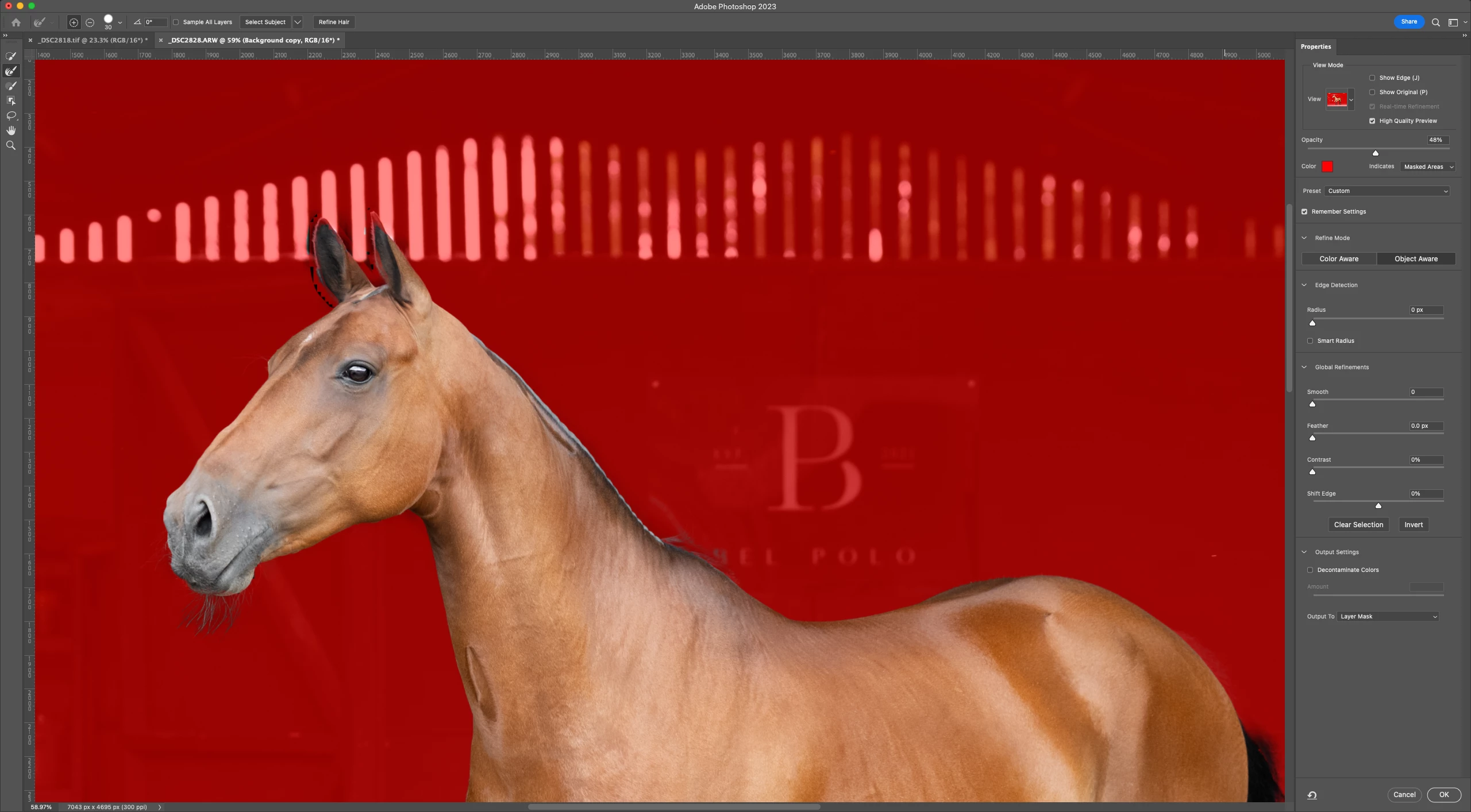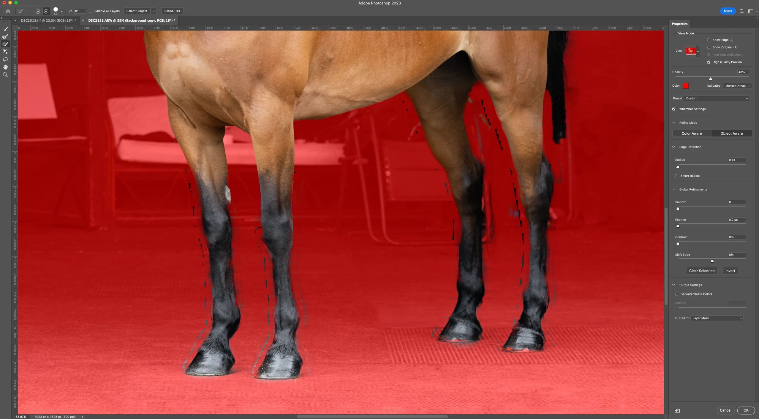 When using the refine edge tool I have started getting these square pixelated edges and this never used to happen. All of my settings are the same as i have always used.