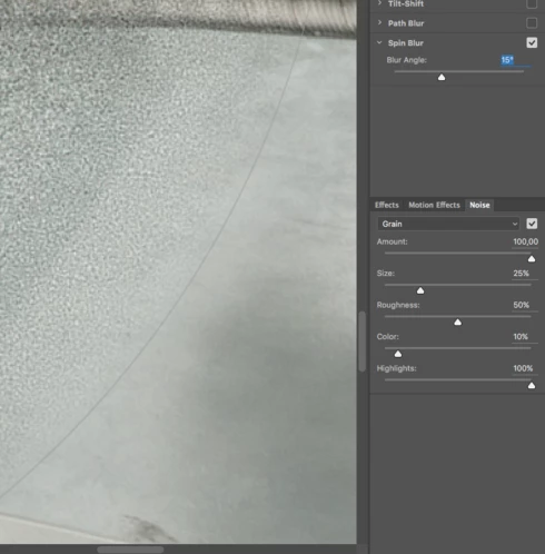 Photoshop CC 2015.5.1 - When adding noise to the blurred area it is not seamless. This happens with all filters in the blur gallery except with the spin blur filter where the noise is smoothly blended to the edge of the blurred area. These sample images have such a high amount of blur just to show the problem I have with the filters. It occurs on both Mac and Windows versions of Photoshop.