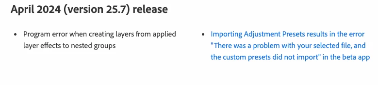 https://helpx.adobe.com/photoshop/kb/fixed-issues.html
