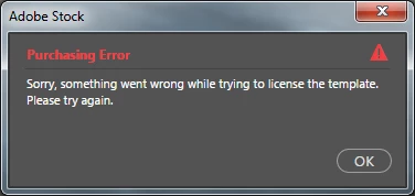 "Purchasing Error. Something went wrong while trying to license the template. Please try again."