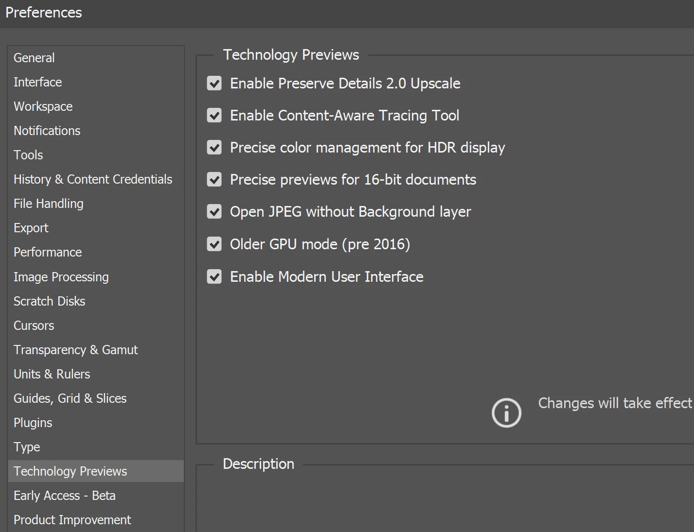I saw another forum post regarding a similar issue, and the moderator said to "Reset Preferences on Quit" and  in Photoshop settings under Edit > Preferences > General