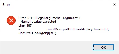 This consistently gave me an error of Error 1244 - Illegal Argument, this error does not crash the program entirely and does not block the feature from being used in my testing.