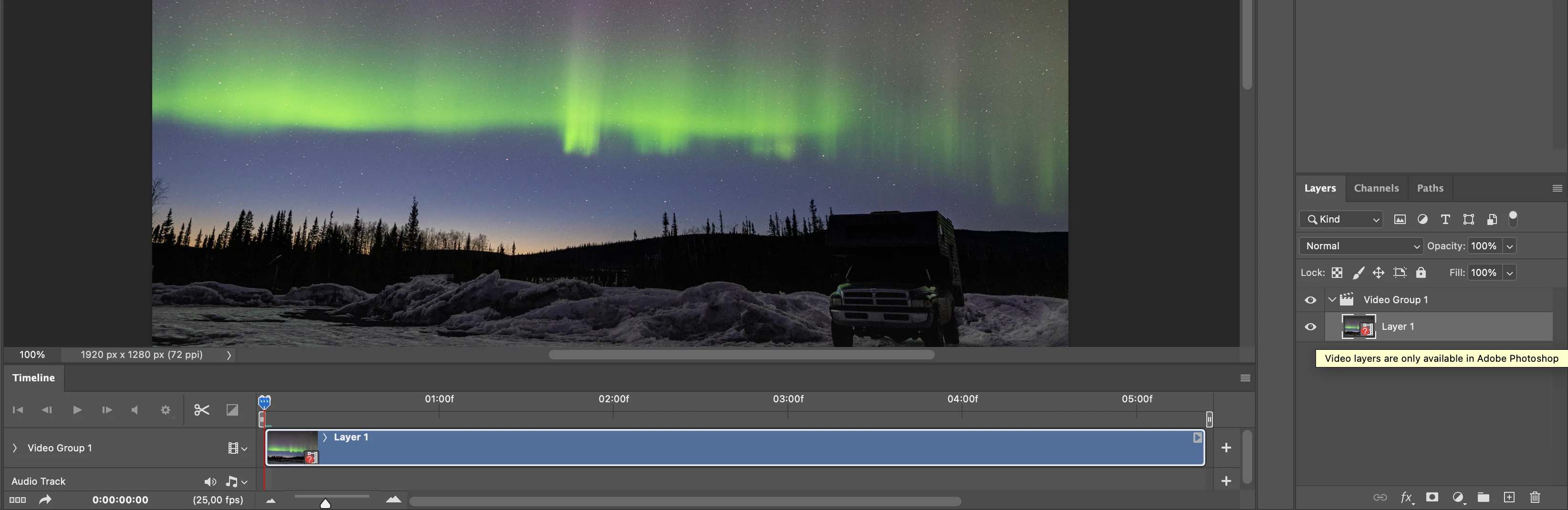 "Video Layers are only available in Adobe Photoshop"