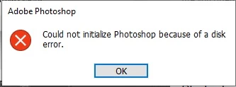 Trying to open photoshop, Get the error:  Could not initialize Photoshop because of disk error.
