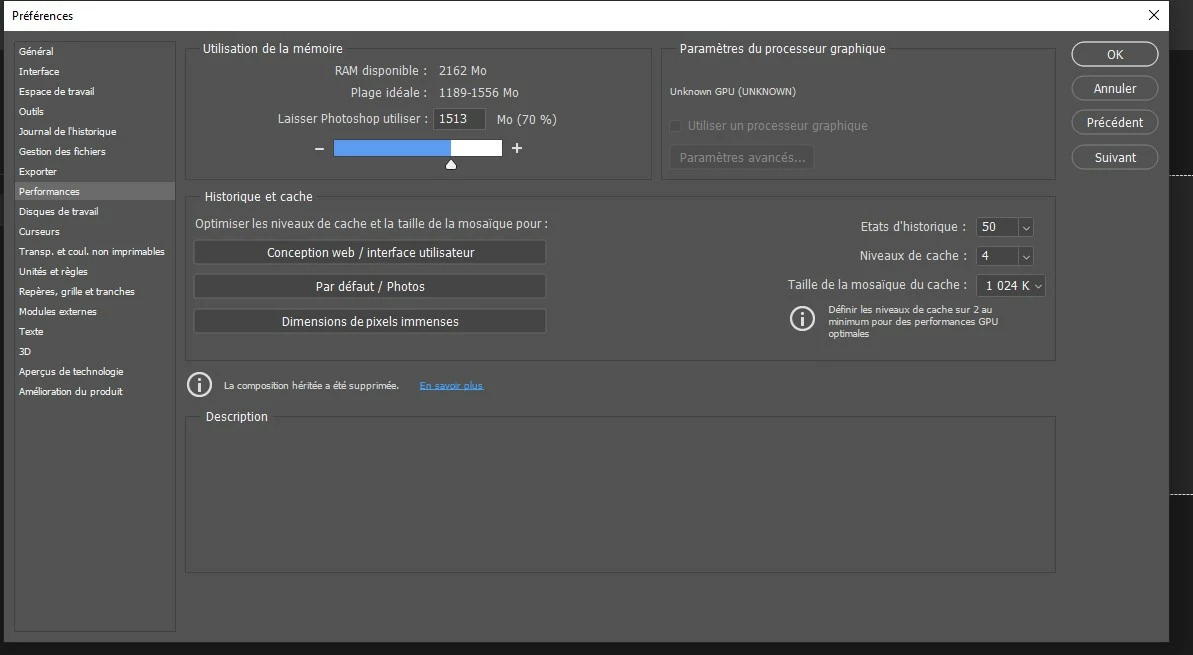 Donc si je comprend bien, tous les pc sont devenus obsolete avec la version actuelle de photoshop 🙄 N'ayant pas été prévenu d'avoir un pc dernier cri avec MSI et tout vos trucs ... Je vais résilier mon abonnement et je n'en ferrai pas la pub. Ou vous faites en sorte que ca marche car ce que je dois décocher ne sont pas accessible. C'est surement du à ma carte graphique obsolete.