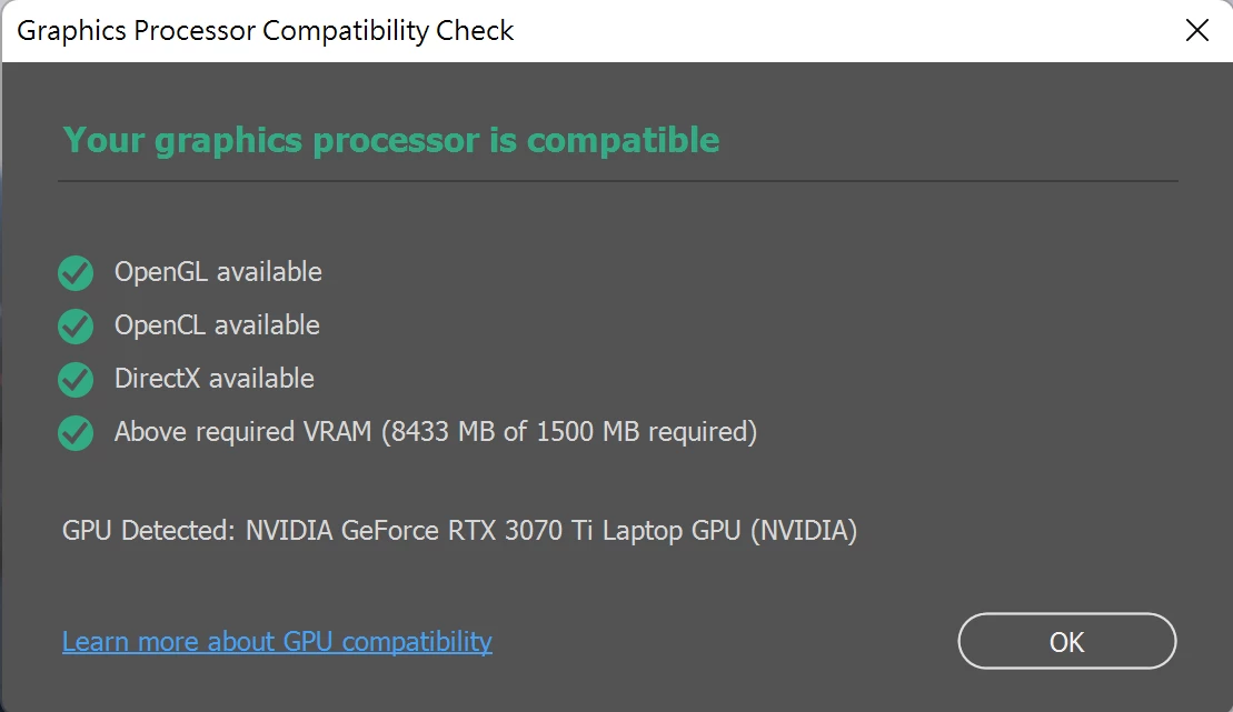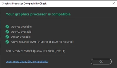 Thanks for your answers, I tried what Ged_Traynor recommended but it didn't work. My GPU is compatible and the drive is updated (image attached).