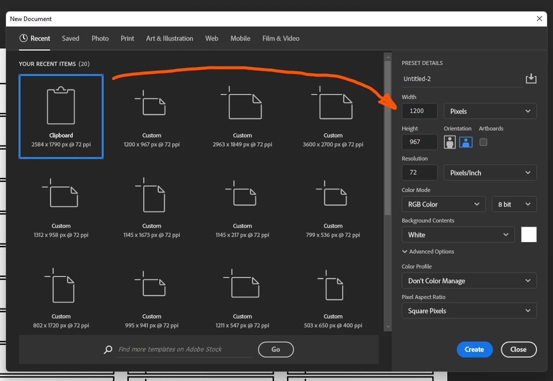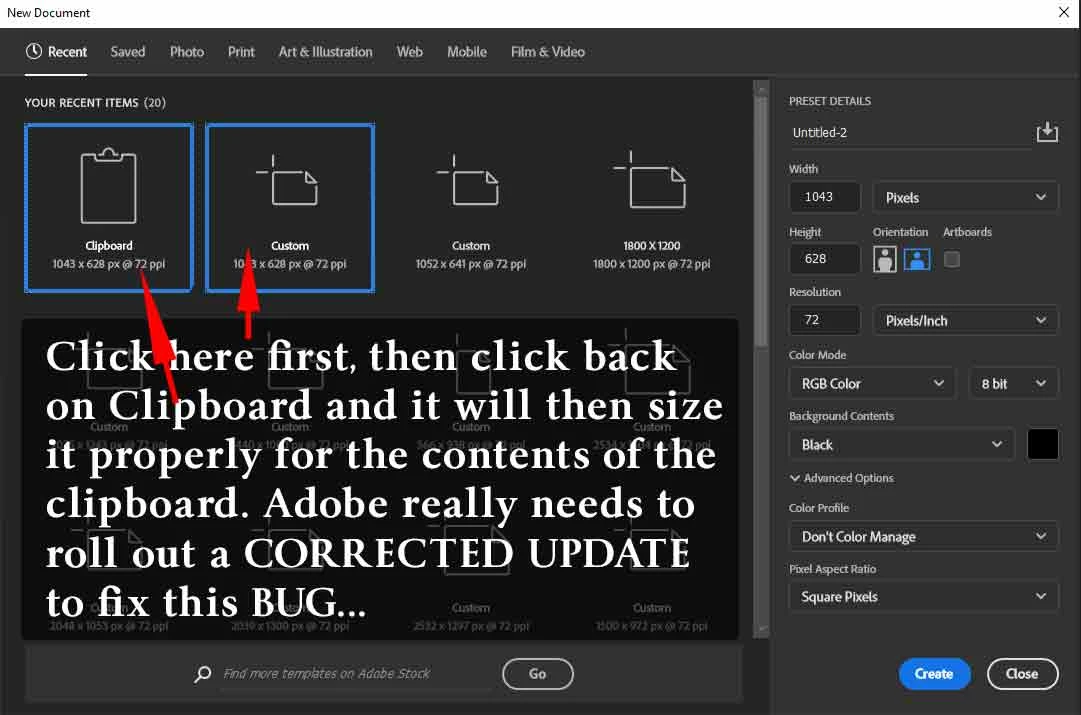Hello, I am having an issue with photoshop where File > New > is not auto-inputting the clipboard size into the canvas size for the new document. This has worked on every version of photoshop until this point. I sadly ended up on version 23.3.2 (photoshop just updated itself in the last couple days I guess without me noticing, and I am pretty sure I had that auto update turned off since I reverted back to 22.2 a couple weeks ago, sigh)