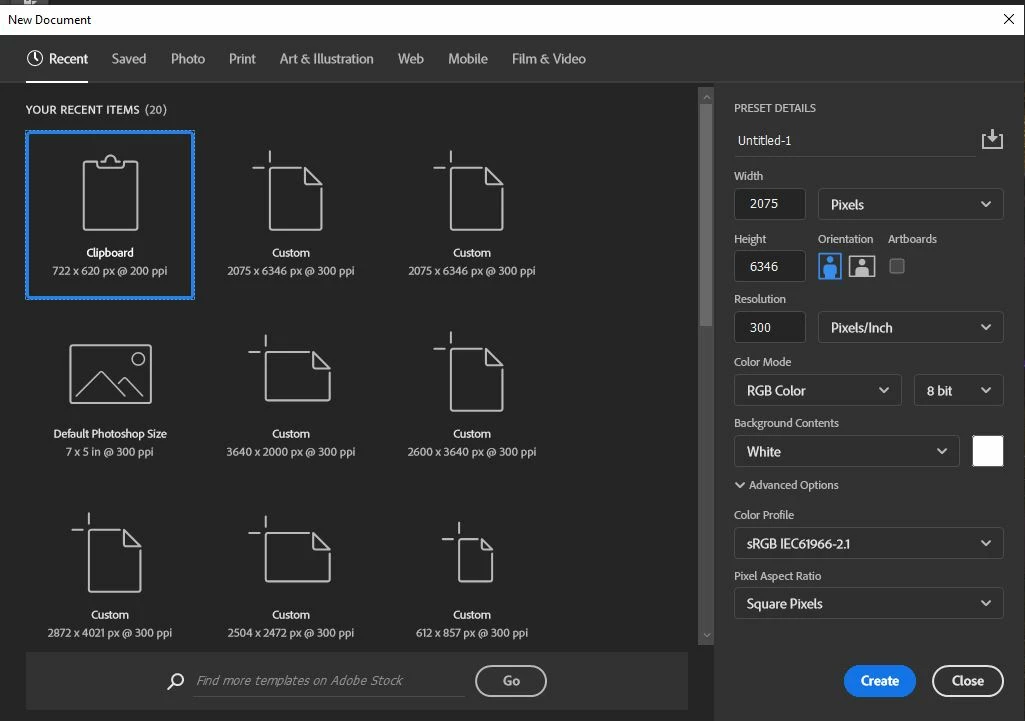 Hello, I am having an issue with photoshop where File > New > is not auto-inputting the clipboard size into the canvas size for the new document. This has worked on every version of photoshop until this point. I sadly ended up on version 23.3.2 (photoshop just updated itself in the last couple days I guess without me noticing, and I am pretty sure I had that auto update turned off since I reverted back to 22.2 a couple weeks ago, sigh)