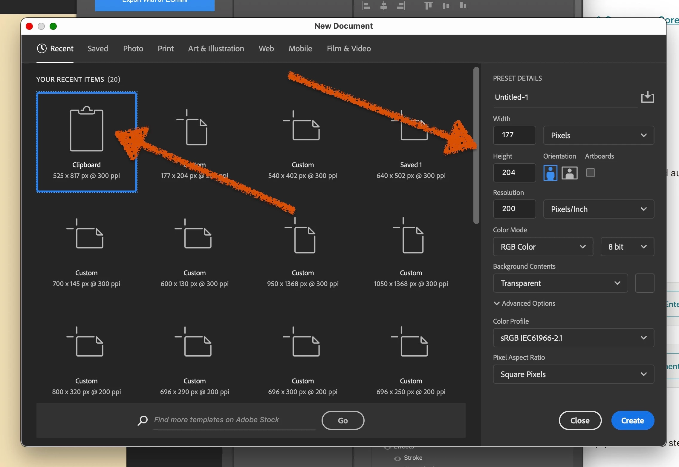 When opening a new document after copying an image to the clipboard as in a screen print, the top left and highlighted suggested document resolution is correct but when double clicked or pressed enter on, opens a document at a different resolution, often the one to the right of the suggested one. This bug is quite a nuisance and has been around for some time. The only workaround is to first select another resolution from the list and then go back to the top left originally highlighted one and click again and press enter or double click on it. Wonder if Adobe plans to fix this or even knows about it.
