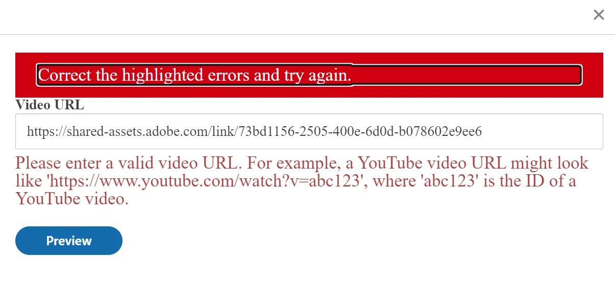 That is a valid URL but I suppose adobe will only allow youtube videos. [abuse removed]