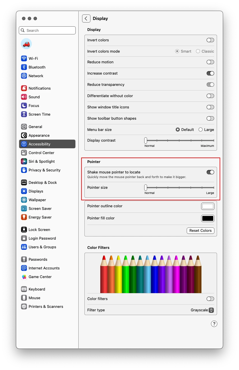 - Due to a large monitor, a slightly enlarged view of the mouse pointer can be helpful to some users.