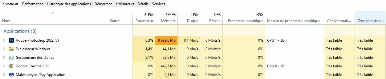 Dans mon gestionnaire des tâches on remarque que l'application utilise presque 10 000 Mo ce n'est pas normal.