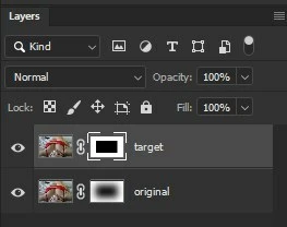 Now let's say I want to copy a mask from the bottom layer, not by dragging it, but by Ctrl-clicking it and adding the mask to the target layer from this selection.