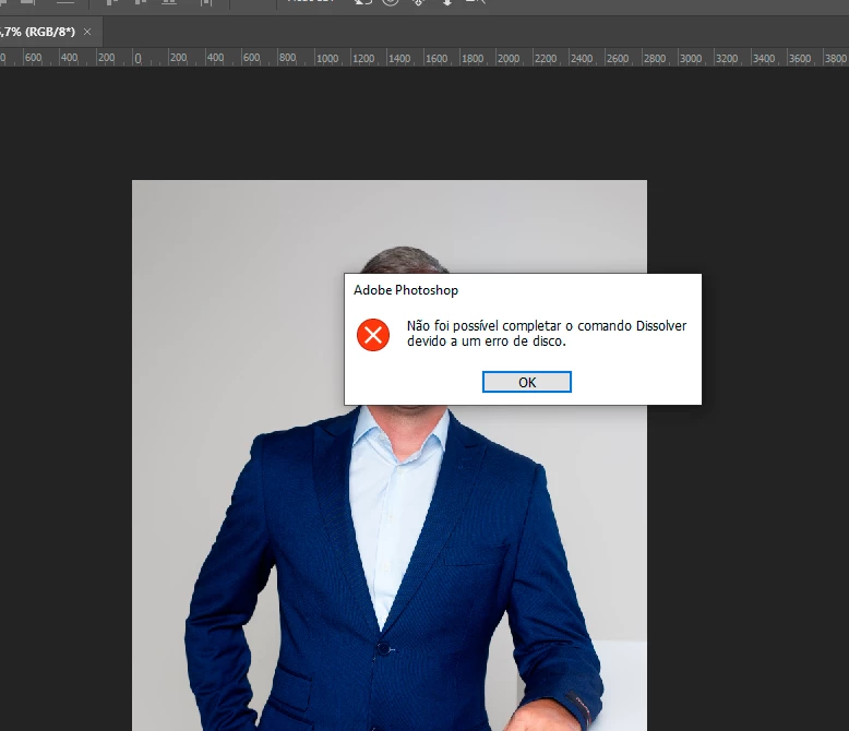 Não foi possível completar o comando Dissolver devido a um erro de disco. Essa é a mensagem que aparece quando tento usar o filtro Dissolver em qualquer foto depois da atualização 23.3