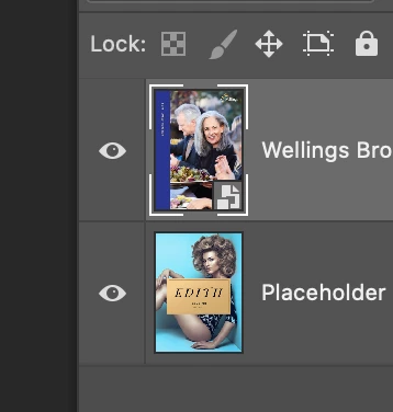 This is what the layout looks like. The images are smart objects. The .psb files have multiple layers and the top layer is the desired image for the composite image. This is what the layers panel in the psb looks like: