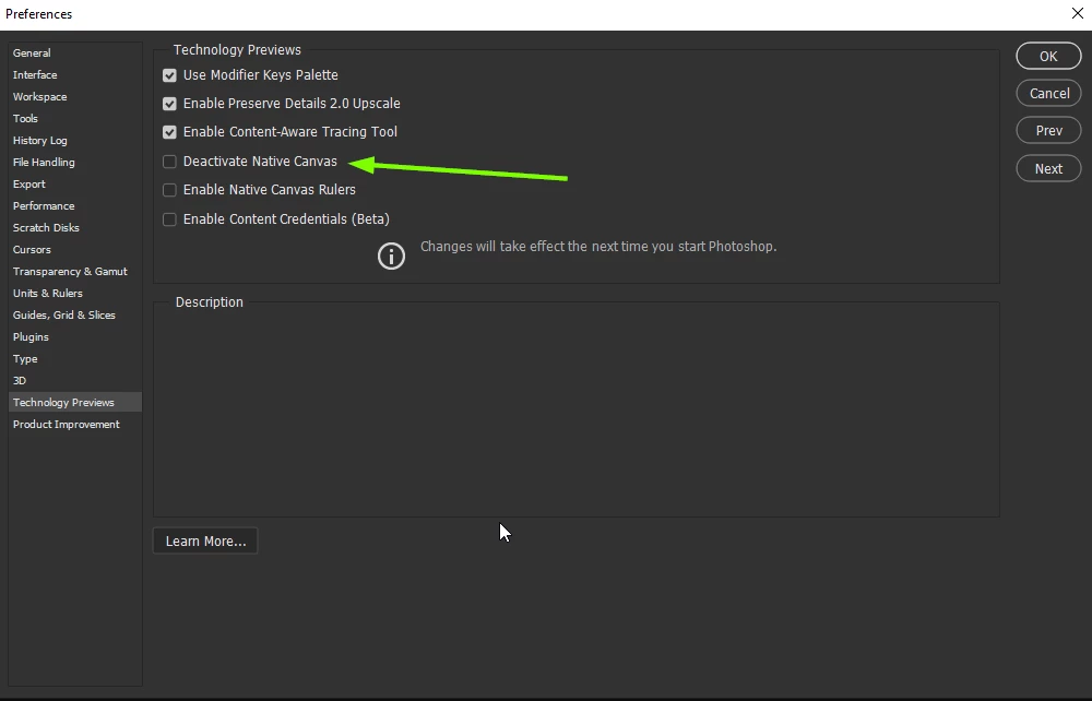 Try enabling this option in preferences and restarting Photoshop to see if it helps