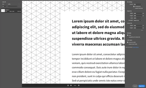 Below is what this design looks like at 100% scale in the Export As dialog.