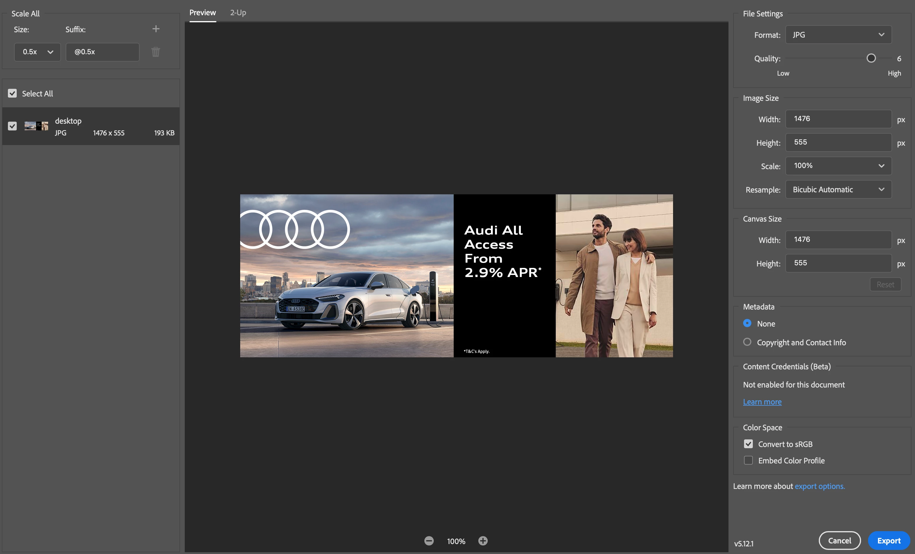 - Then we decide we'd like to also have a smaller variant so we export another file but this time select 0.5x in the Scale All section of the Export As interface.