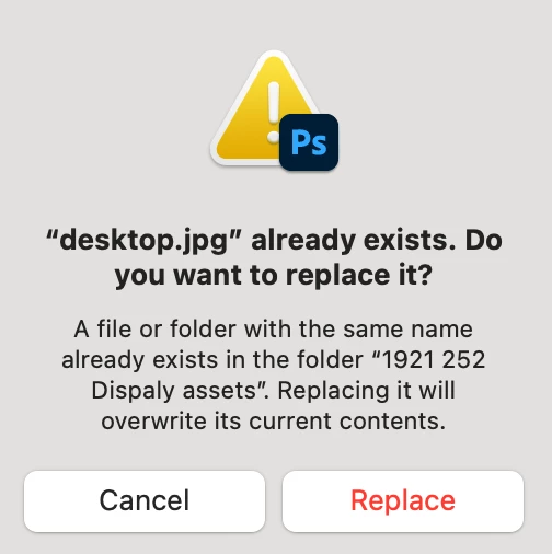 - The export window shows the original file name without suffix, which creates a prima facie naming conflict.