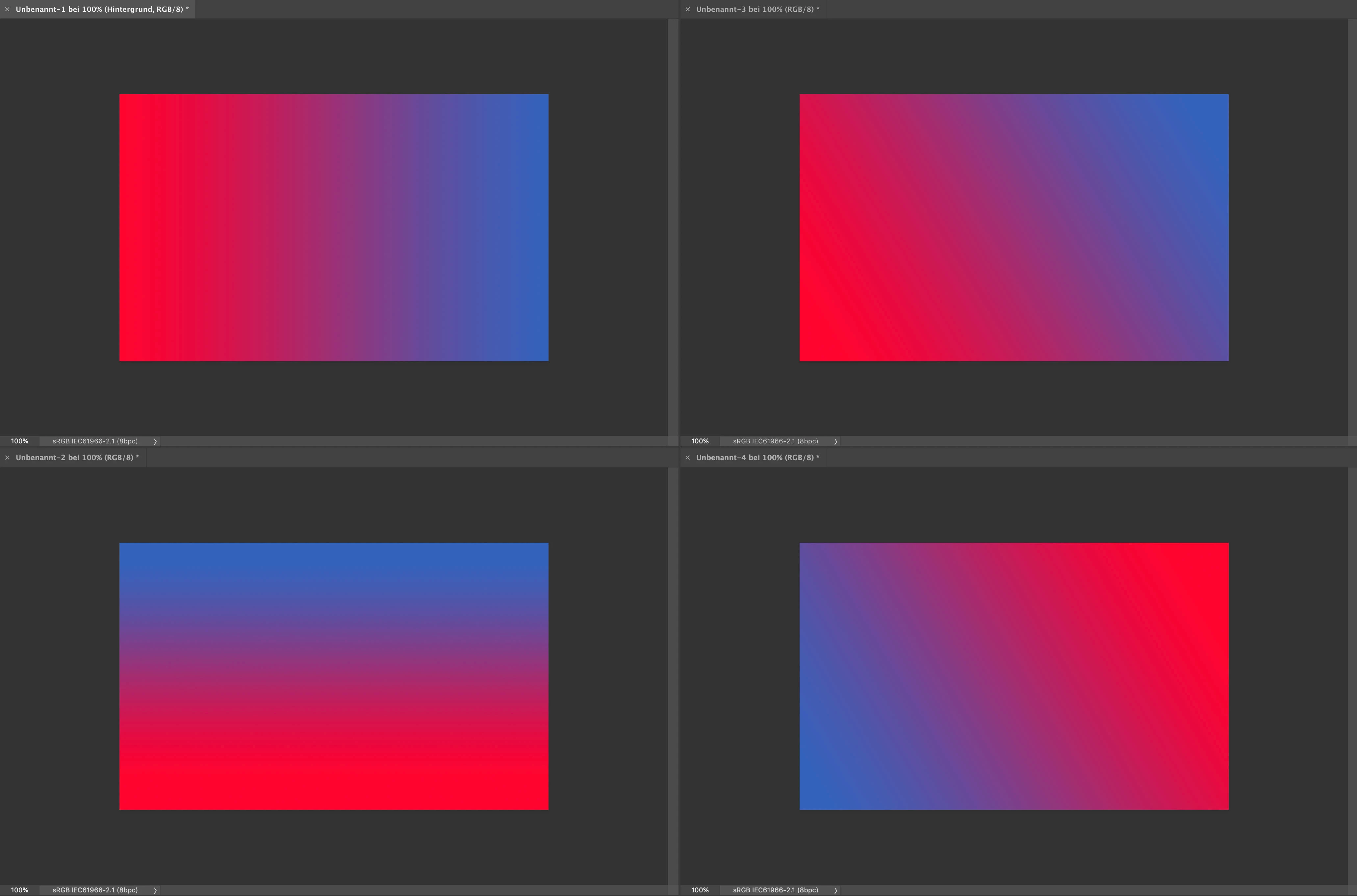 When you have 4 documents open and arrange them via Window > Arrange > Tile you get something like this: