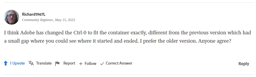 The old way was there is a small space between the image and the workspace (1/8-inch or less?) on all four sides after Ctrl-0. I found a video from 2009 that shows how far back it's worked that way. I don't know why the change was made. I hope it goes back to the way it was, as I use this shortcut constantly because I want to see an edge on all sides.
