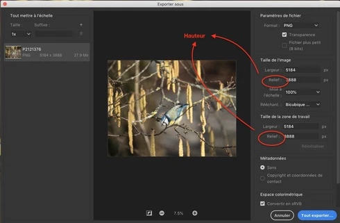 Photoshop 20.0.0 , Français, erreur dans le dialogue d'exportation.