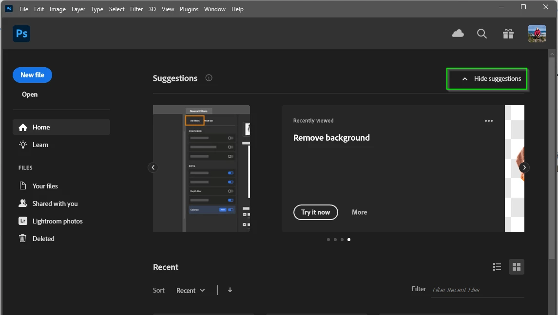 With Photoshop 25, every time I start up PS, an image opens on my screen accompanied by a tuorial on generative ai by Anna McNaught. How to I disable this? I don't need it and I can't find a way to get rid of it.