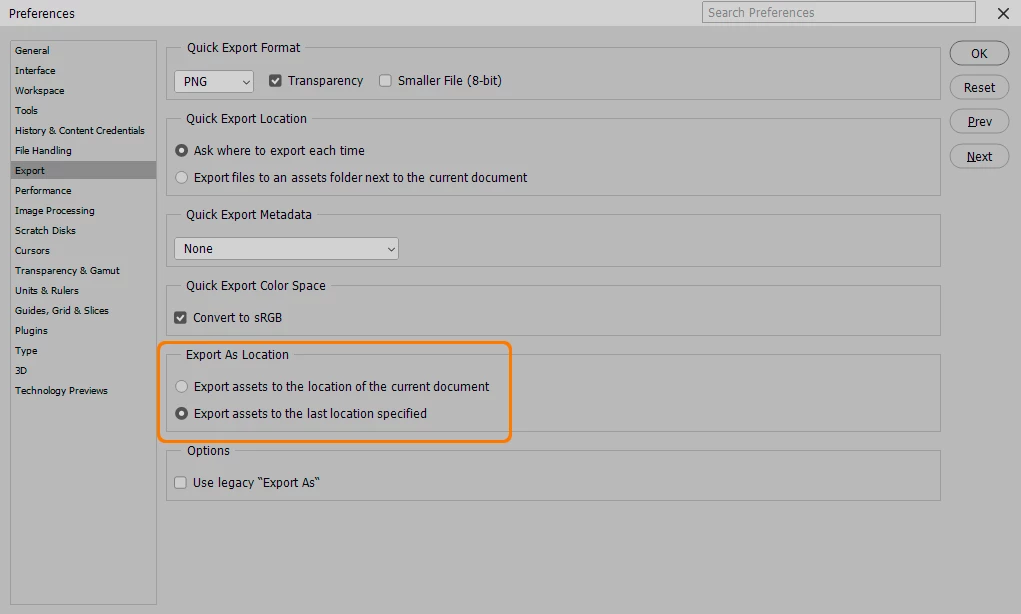 That only fixes the Export As function. It doesn't fix Quick Export, which is controlled by the two radio buttons *above* the part of the dialog that you specified. And Quick Export still doesn't have an "export to the same folder as the current document" option.