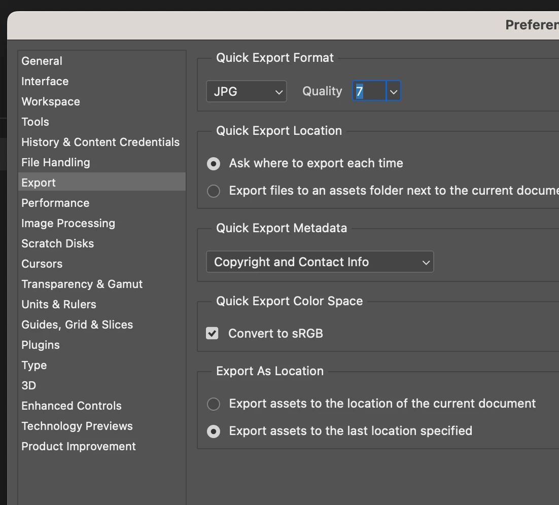 Today I update Photoshop to the latest (23.2) and now the Export As dialog does a miserable job on export quality. Even at the highest setting of 7, the pictures saved to web as JPG are _signiciantly_ bad. Just a day before—before I updated—the quality was no problem and the norm of what I had expected for the last few years.