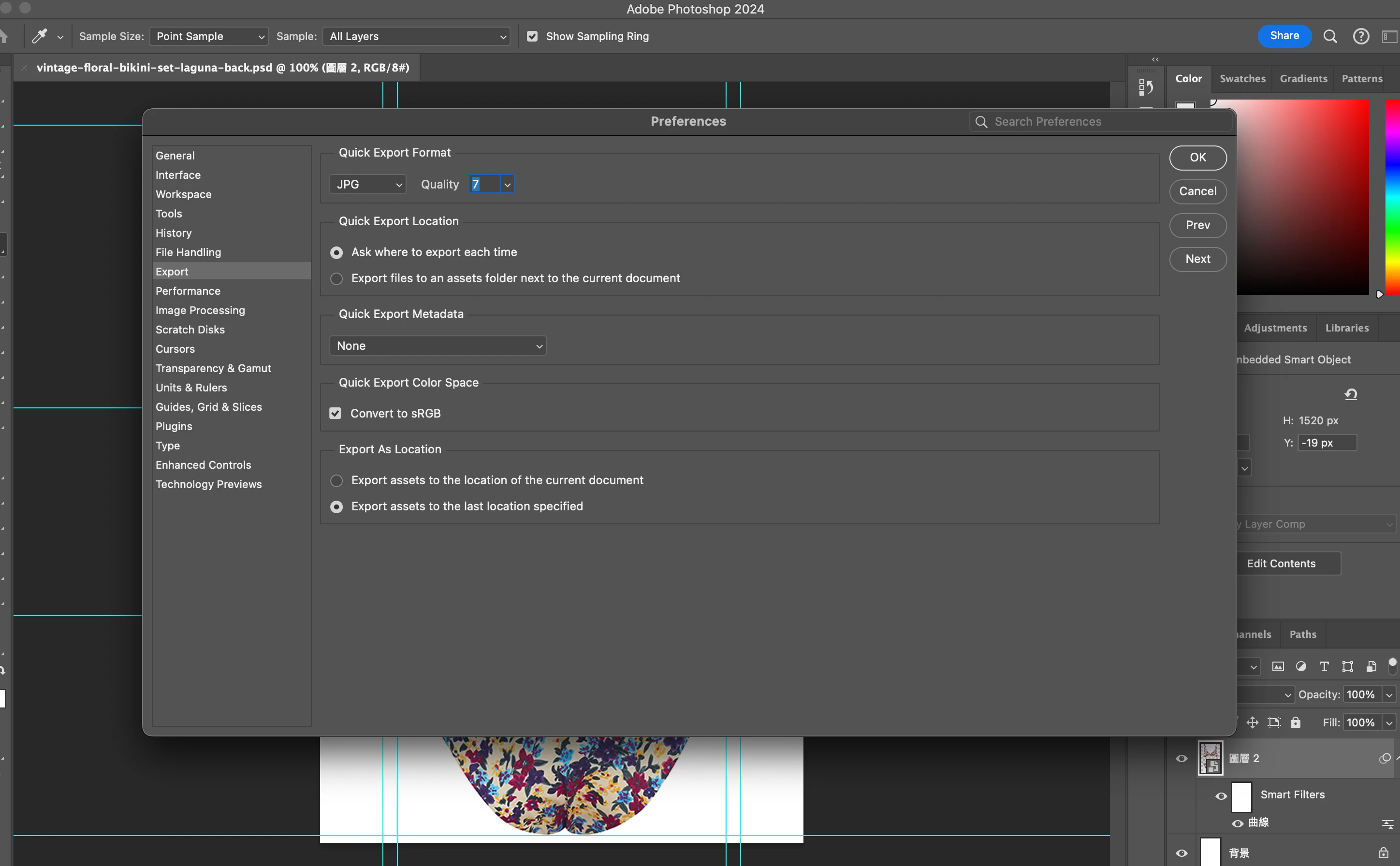 The workaround, choose legacy export is no longer available for me. PS 24.5 Macbook Air 2022. Looks like I can still get to SAVE FOR WEB Legacy though.