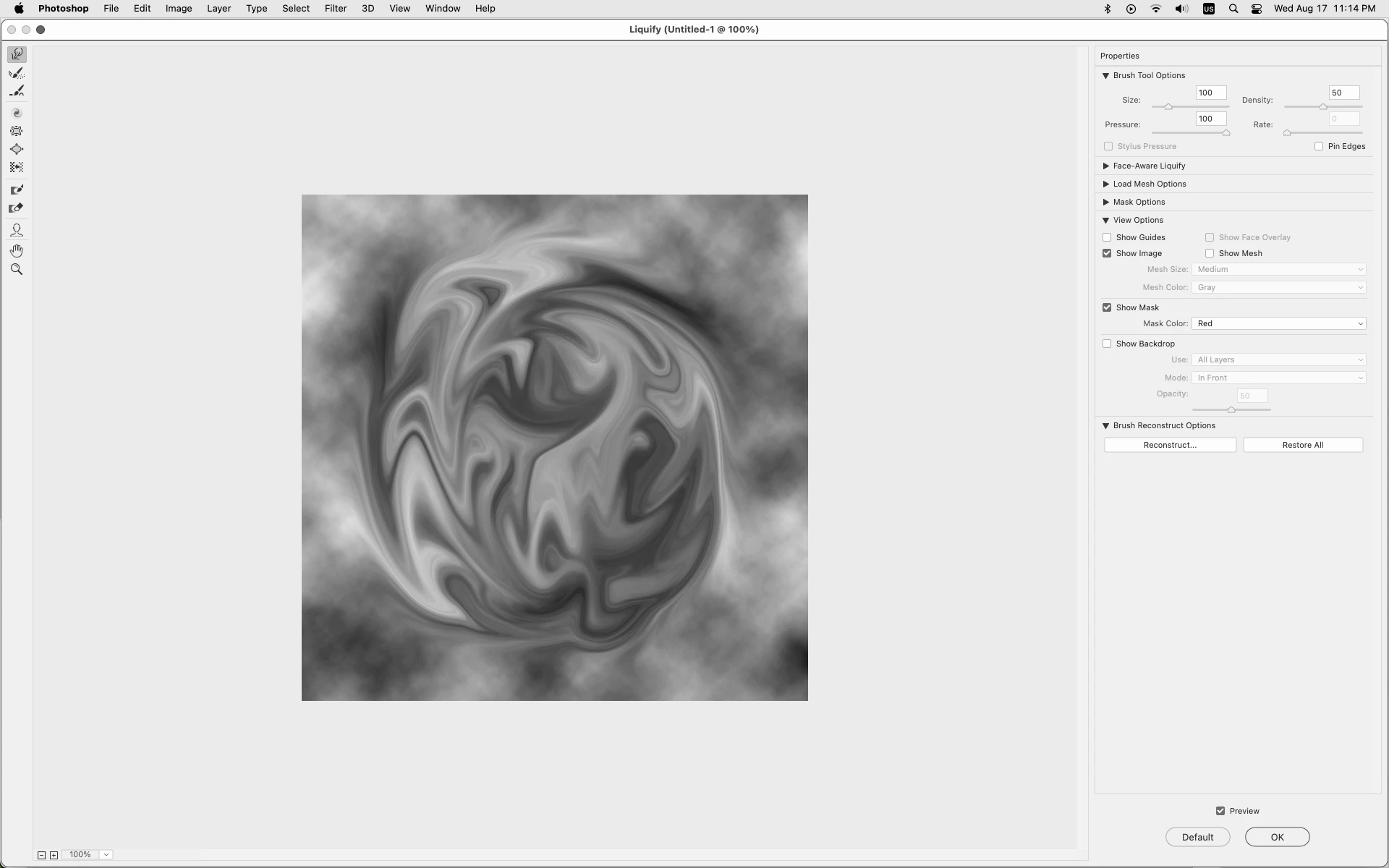 P: Liquify with a small marquee selection on a Silicon Mac returns no result.