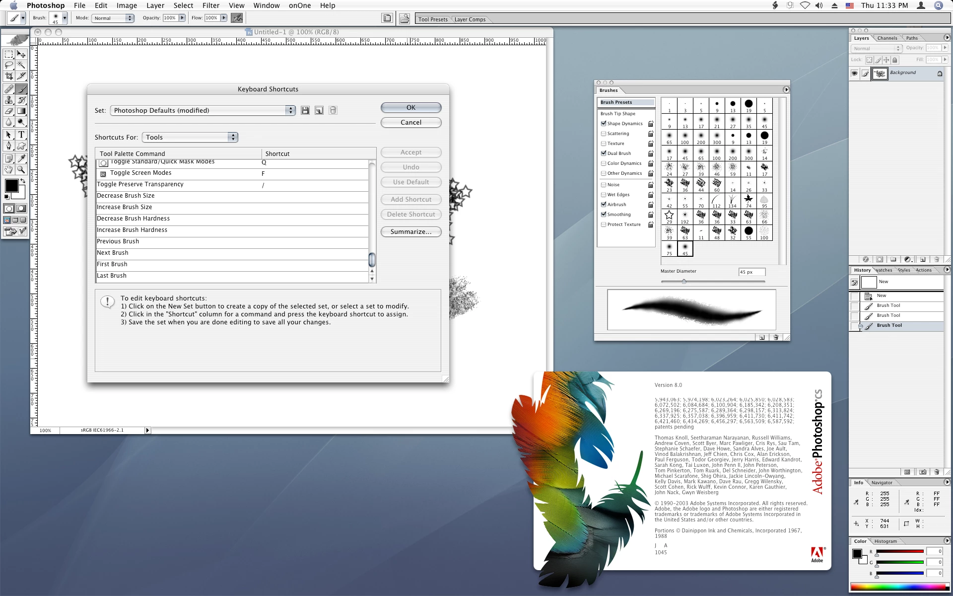 Bug or not, the issue is present all the way back to photoshop cs (photoshop version 8 the first version with changeable keyboard shortcuts) running OS X 10.4.11 Tiger on a 2001 Power Mac G4 Quicksilver .