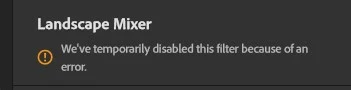 I'm trying to use Neural Filters - Landscape Mixer but it keeps coming up with a message "We've temporarily disabled this filter because of an error".