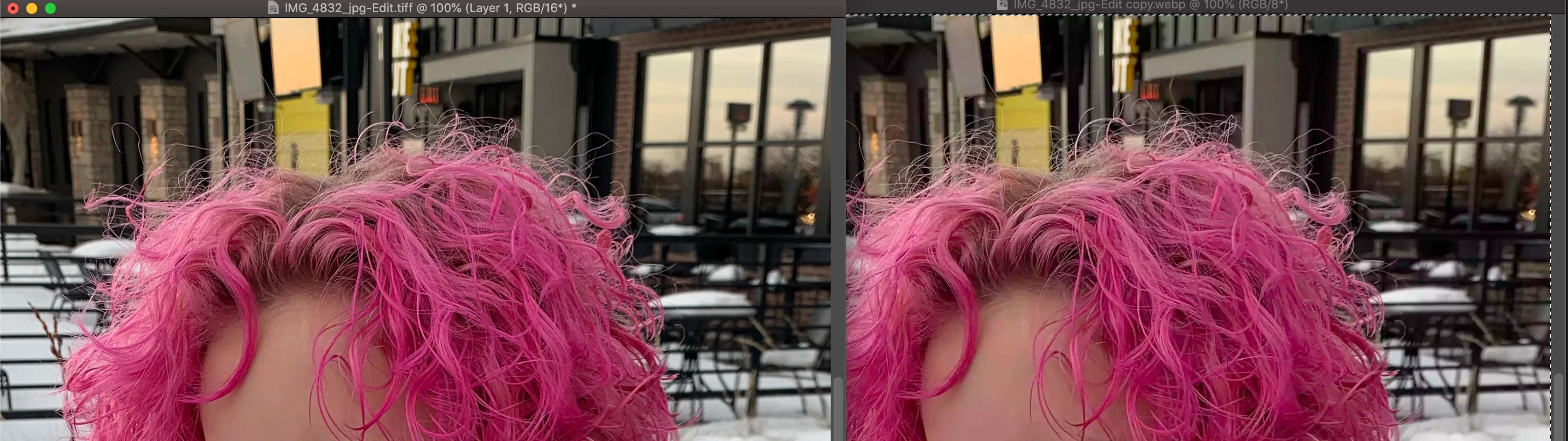 Photoshop's new webp support under save-as copy produces images that are over saturated compared with the original in photoshop, and when compared to exported jpg files. More compressed webp files have more excess saturation. See attached screenshot (I was unable to upload the webp image itself, as this Adobe Support page does not accept webp uploads). The webp image is also visibly more saturated when re-opened in photoshop. in the image below, the JPG file looks identical to the original image in Photoshop, as expected.