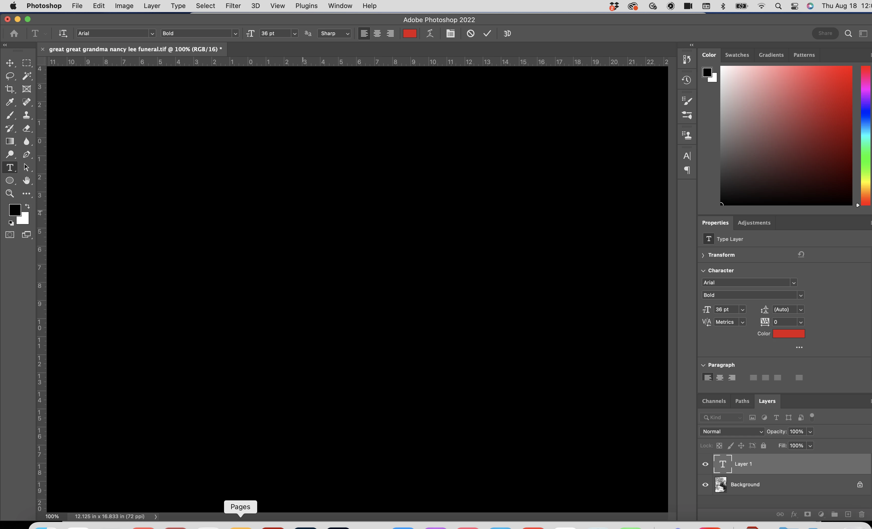 Now,  after I click on the text tool icon, the moment I try to type, the whole Photoshop window turns black. I cannot see what I am typing, but I find that when I click off of the text, the image re-appears as normal, with the text that I typed. But, if I then click inside the text line, with the text tool, and try to add a return, for example, the window goes all black again.