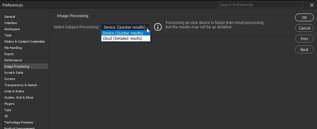 Image Processing- Select Subject(Device , Cloud) : I don't know if this affects object selection, but I tried changing options.