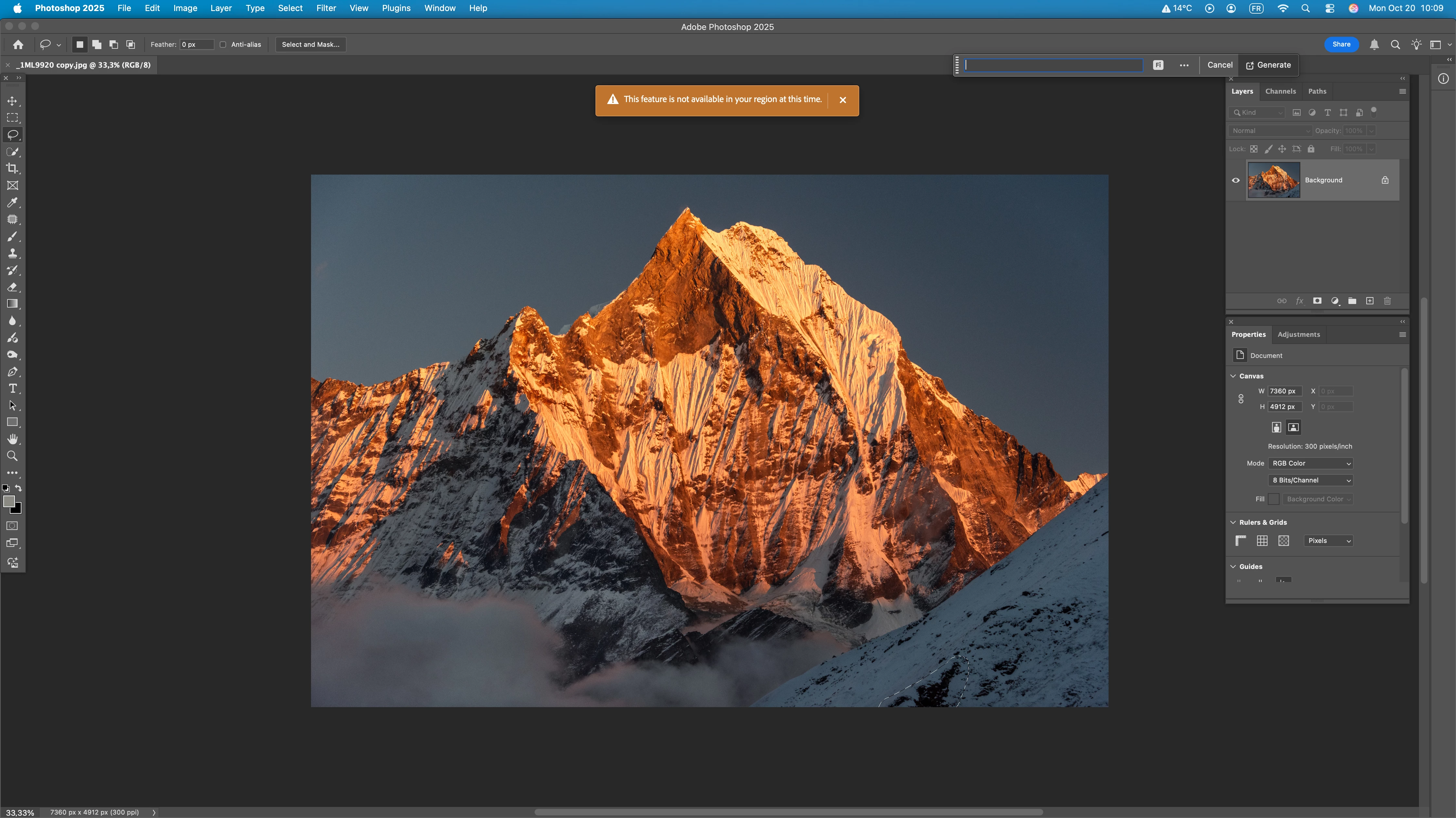 P: (Oct) Photoshop Generative Fill Error This feature is not available in your region at this time.