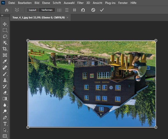 There seems to be an issue with Photoshop 2023, which the Perspective Warp tool makes the images appear upside down. It is only after approval that the images resume their orginal position. ie Correct way up.
