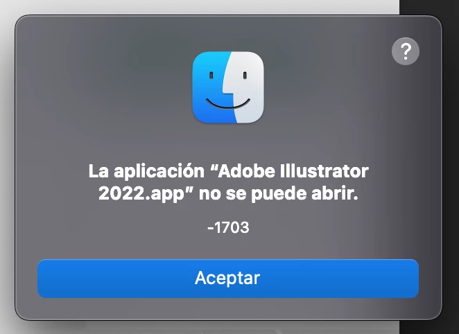 The application “Adobe Illustrator 2022” can’t be opened. -1703