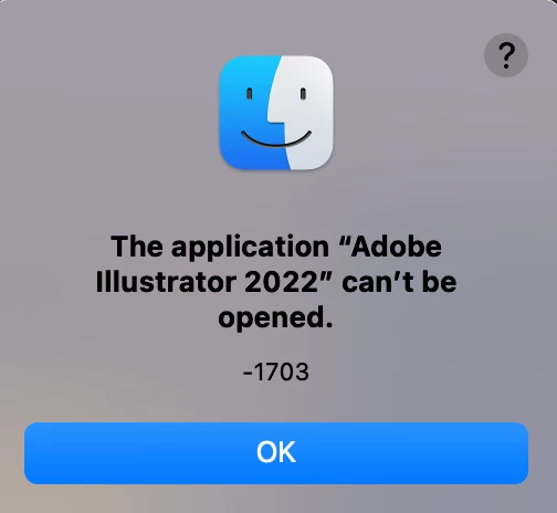 The application “Adobe Illustrator 2022” can’t be opened. -1703