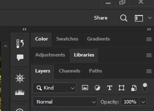 In photoshop 2022 (version 23.2), photoshop implemented a Blue Share button in the