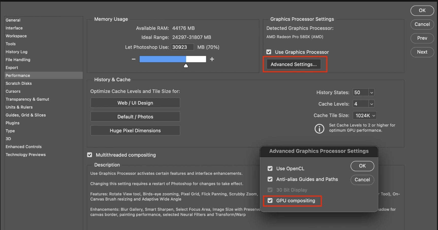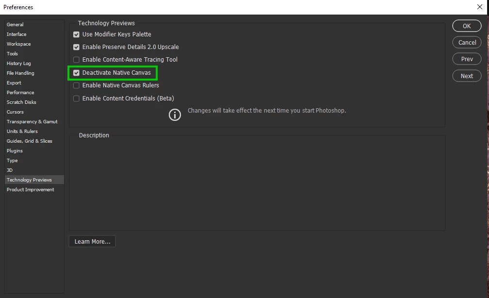 Try enabling this option in preferences and restarting Photoshop to see if it helps