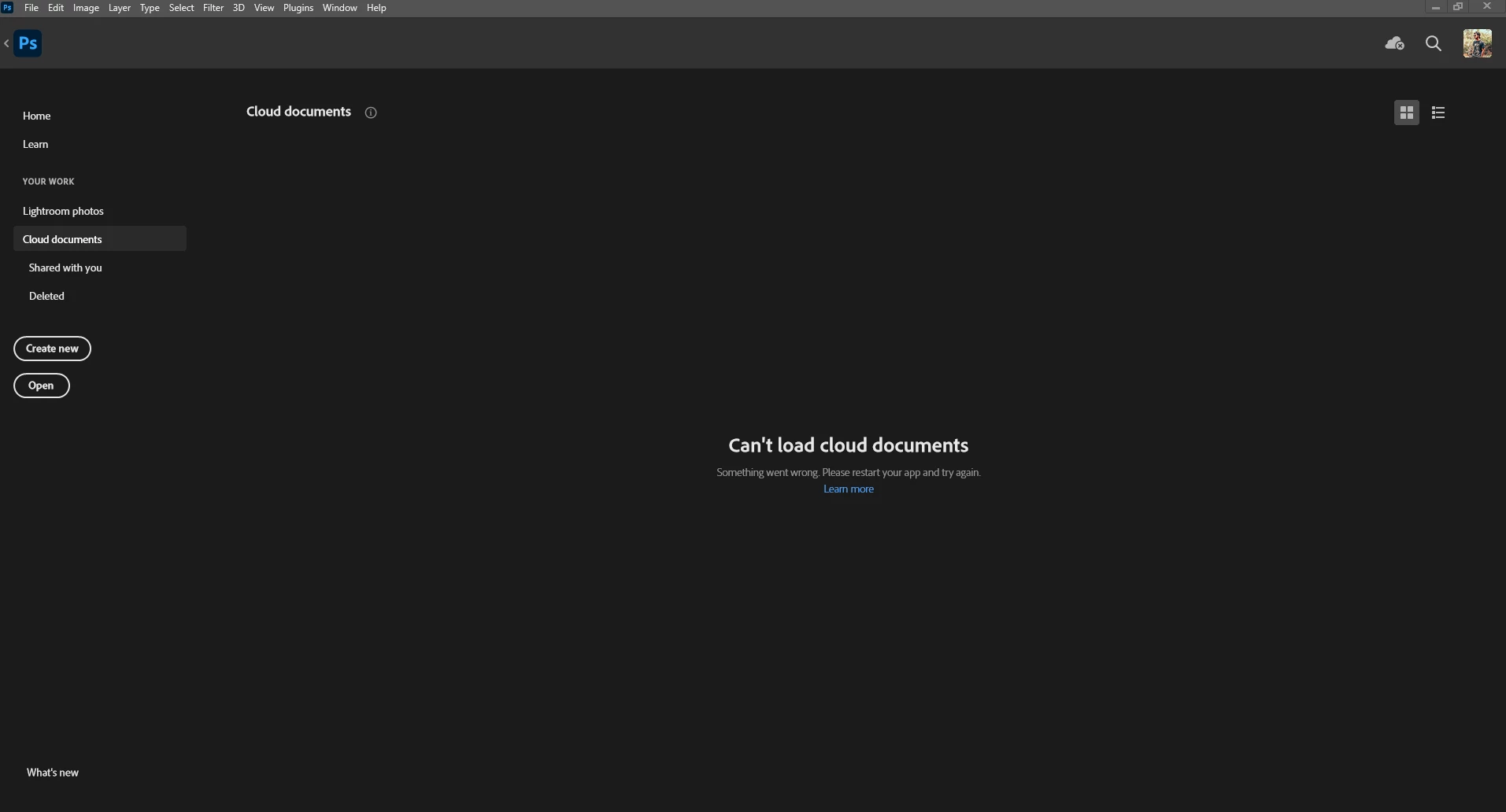 I can't access my cloud documents after updating my photoshop to the latest version, and I keep getting this message "Can't load cloud documents. Something went wrong. Please restart your app and try again."