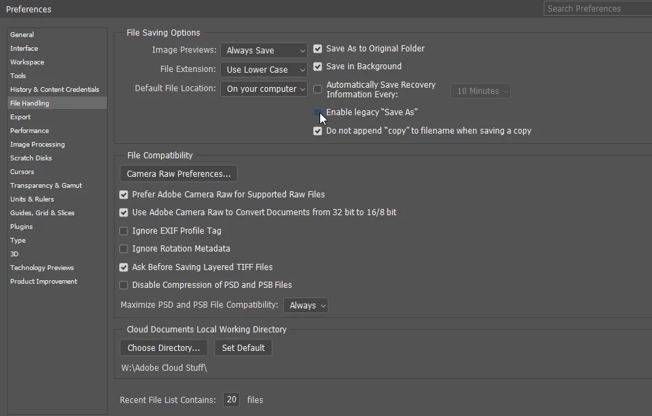 Try to Enable legacy "save as" in preferences.