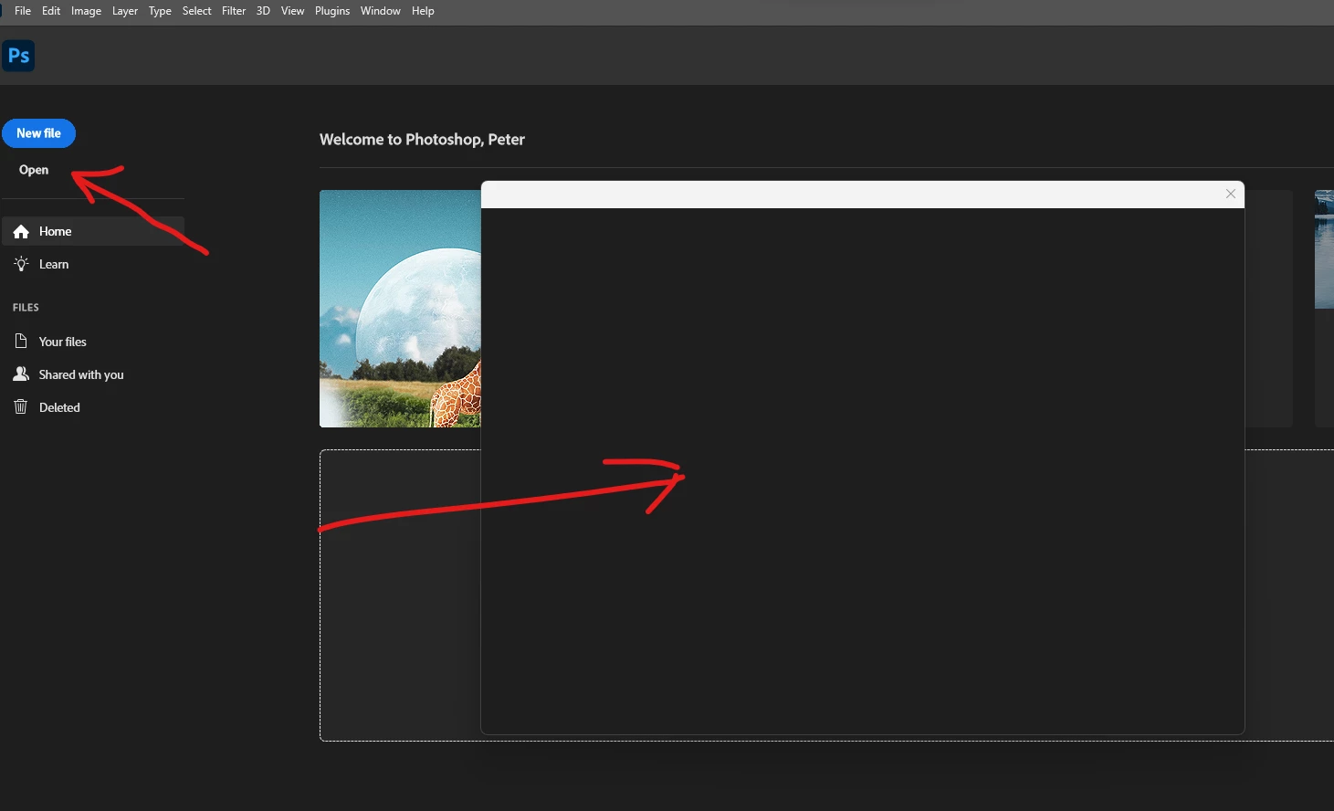 P: Photoshop 24.2 When trying to open or save box is blank
